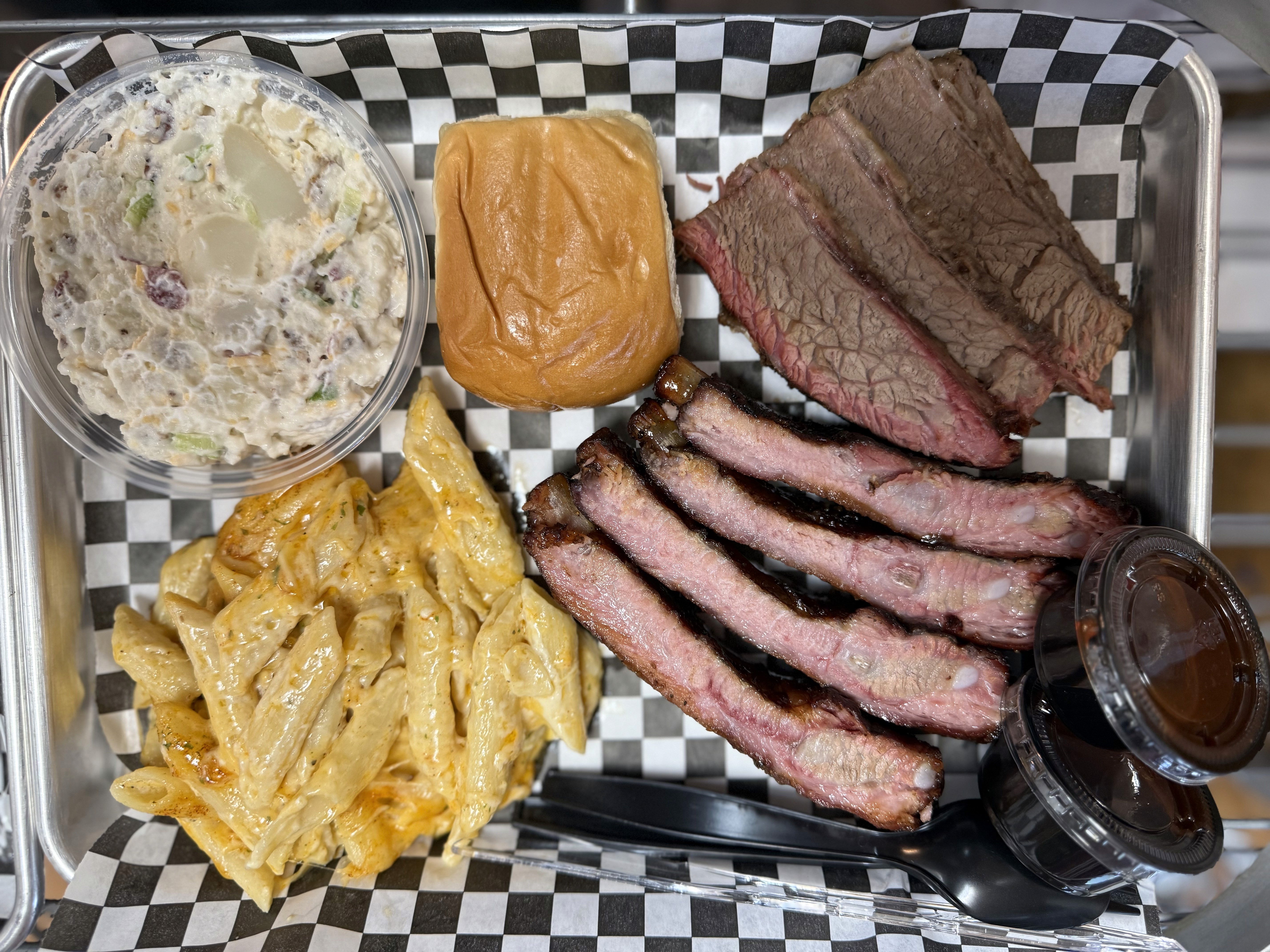 Small little BBQ joint with outdoor seating. Very friendly staff. The Mexican Lumpias were very good. Think of a lumpia with birria meat with the soup. The ribs were very good, tender and juicy. The Tri tip was a bit dry and overcooked, I like my meat more rare. I would get the ribs again but probably not the Tri tip.